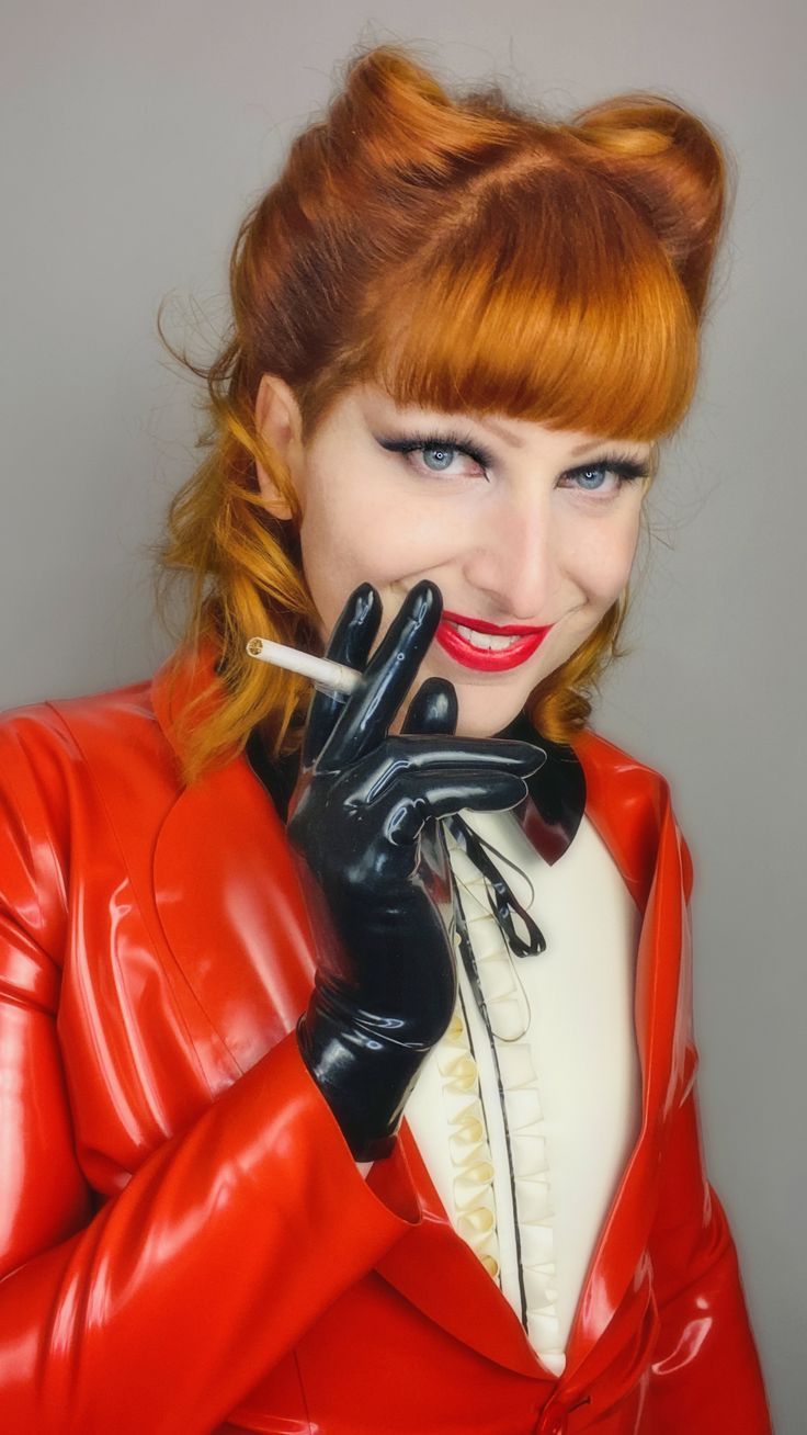 Annarosenmüller Latexhandschuhe Lippenstift raucht Zigaretten