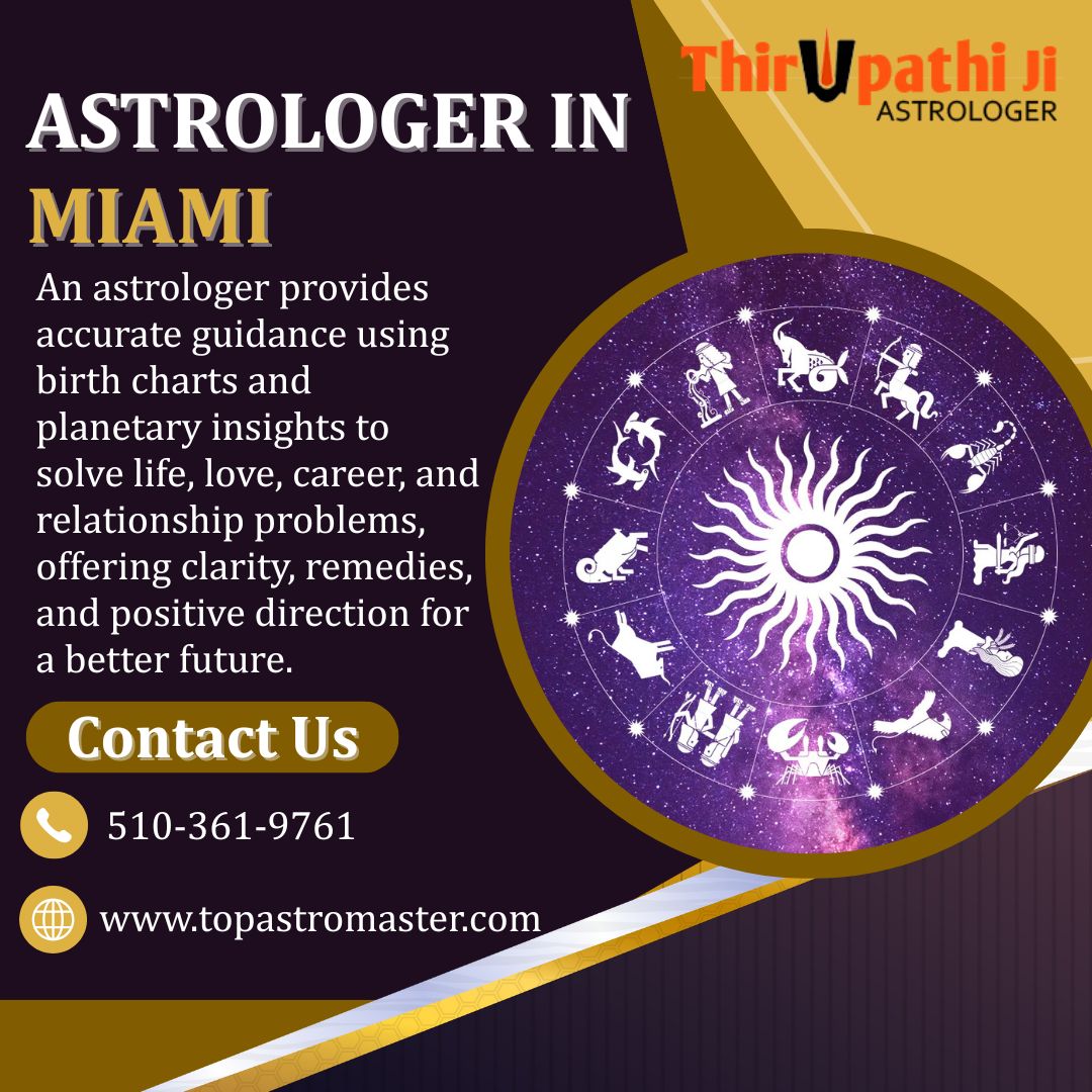 Astrologer Thirupathi Ji is a trusted Astrologer in Miami, offering accurate astrological guidance for love, career, marriage, and personal life. With deep knowledge of traditional astrology, effective remedies, and result-oriented solutions, clients receive clarity and peace. Get reliable astrological insights to overcome challenges and move forward with confidence and positivity.