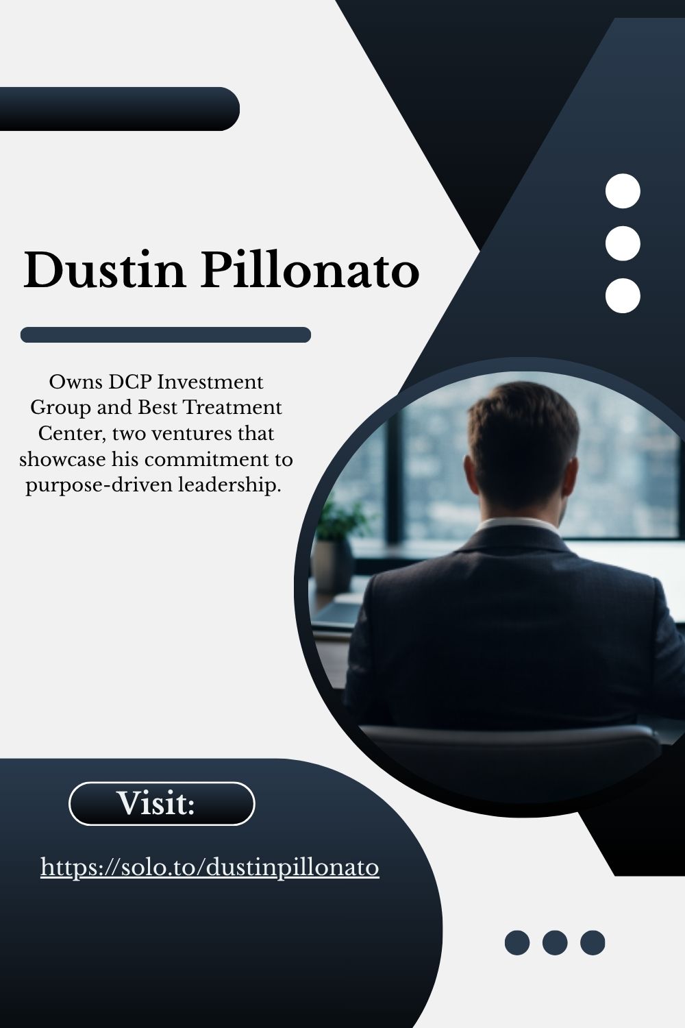 As the driving force behind Best Treatment Center, a company offering comprehensive recovery care, Dustin Pillonato is an entrepreneur with a focus on excellence. He more recently founded DCP Investment Group where he leads the company, driving strategic investment initiatives.